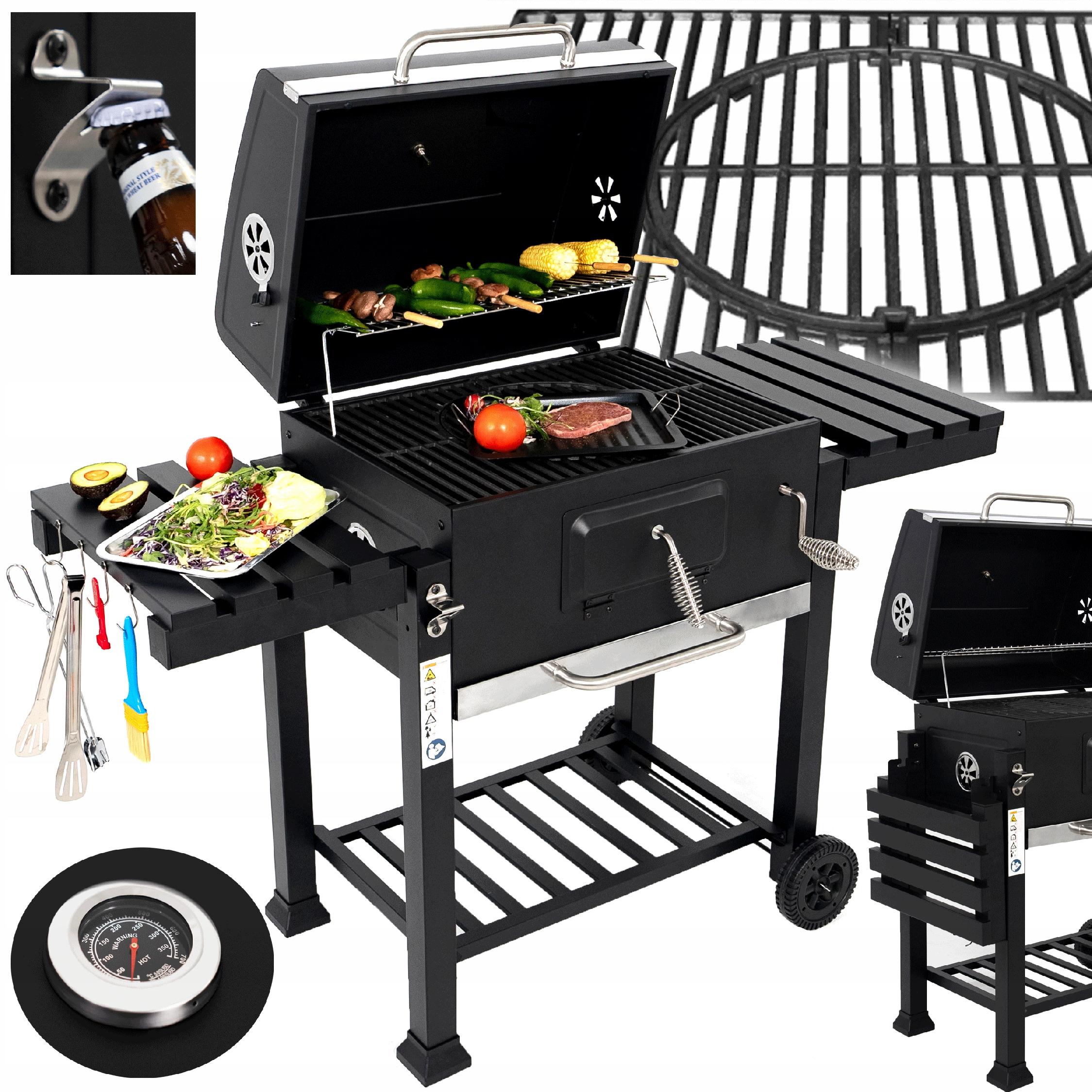 Grill Węglowy Ogrodowy Żeliwny Ruszt Duży Pokrywa Popielnik Termometr 136CM Typ produktu prostokątny