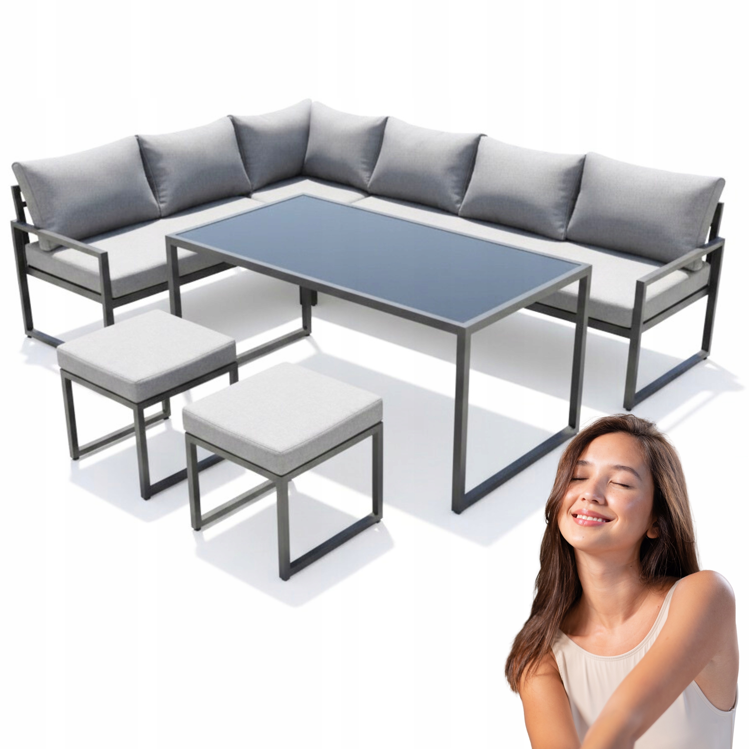 MEBLE OGRODOWE METALOWE METALOWY DUŻY NAROŻNIK STÓŁ 2PUFY ZESTAW XLS-2013 Linia IdealGarden